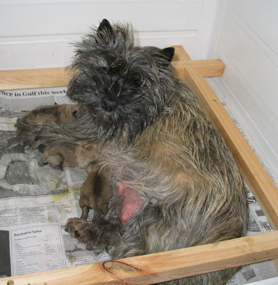Left: Shearwater Sinead (Ginny) with her litter, by Shearwater Ah Jim Lad (Jim).