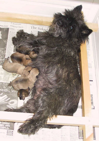 NEW PUPPIES ! Left: Shearwater Shannondoah (Shannon) with her new litter, by Ch. Shearwater Cae de Sonhas (Sonny). Born 20th October 2001. |