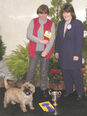 Cairn, best of movers, excellent showman. CC & BOB." "Most attractive red brindle in superb order, very eyecatching,