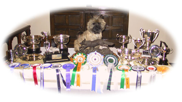 Cups presented to Sonny for the Cairn Terrier winning most Challenge Certificates in 2001. |